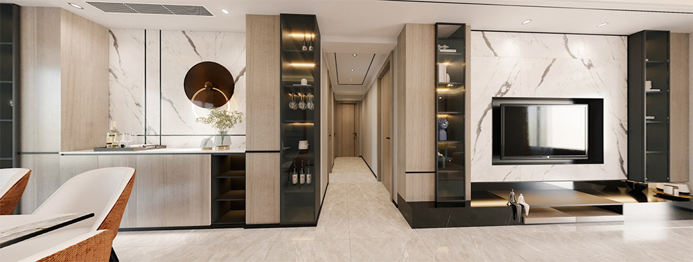 佛山潘村公寓四居輕奢風格裝修效果圖