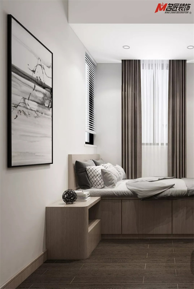 榻榻米打造的空間好看兼?zhèn)鋵?shí)用性。墻上的藝術(shù)作品,增添了藝術(shù)的氣息,為簡(jiǎn)潔的空間注入了藝術(shù)和文化的力量。無(wú)論是臨時(shí)居家辦公,備用客房,亦或是書(shū)房,這方小天地里游刃有余。