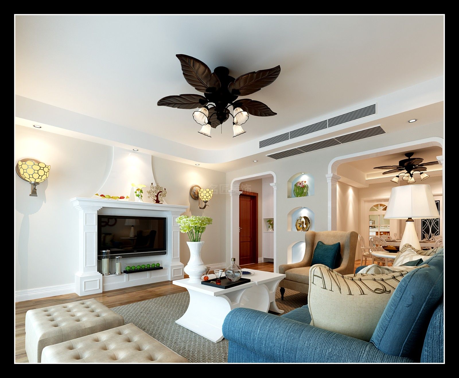 海口京江廣場復(fù)式280平新美式混搭新中式