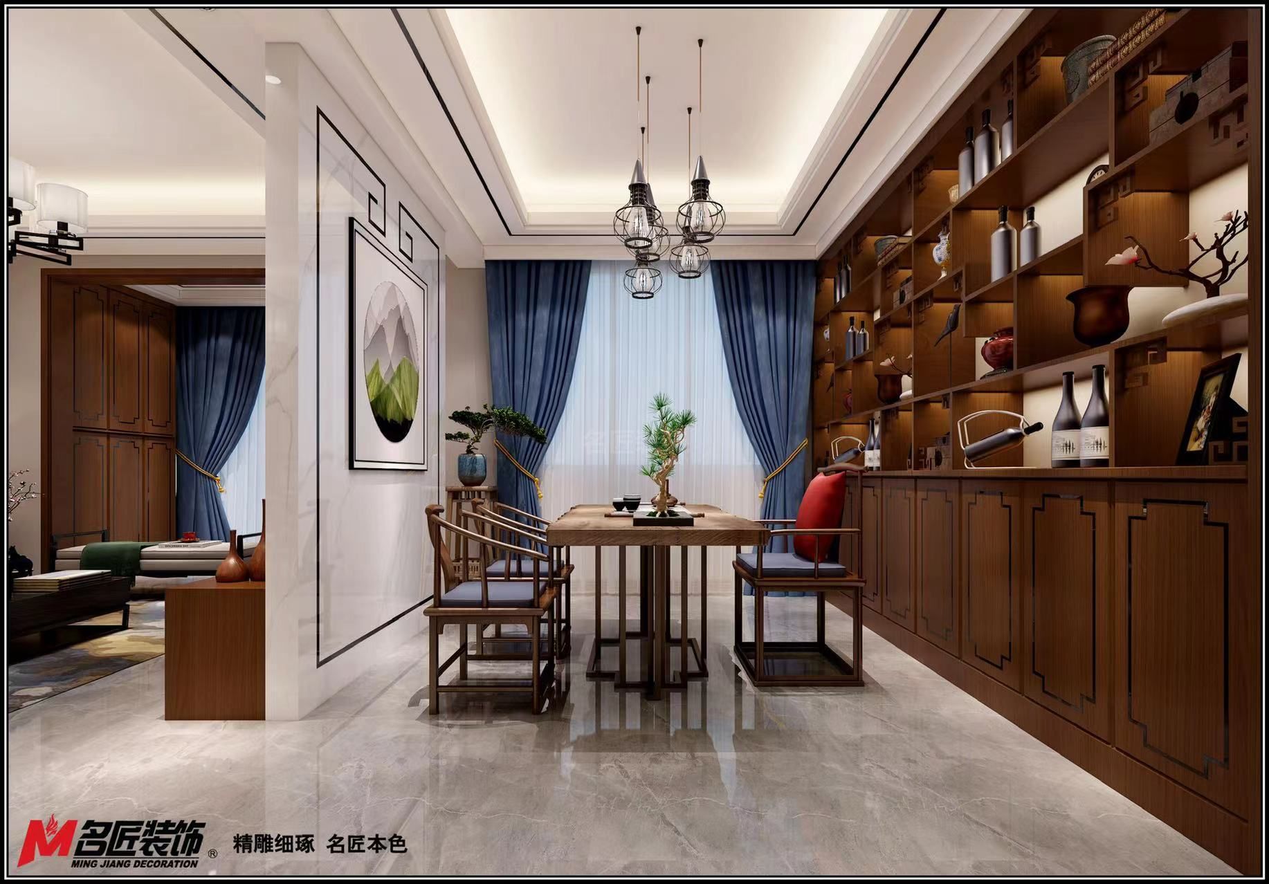 遂寧金域央墅三居新中式風(fēng)格裝修效果圖