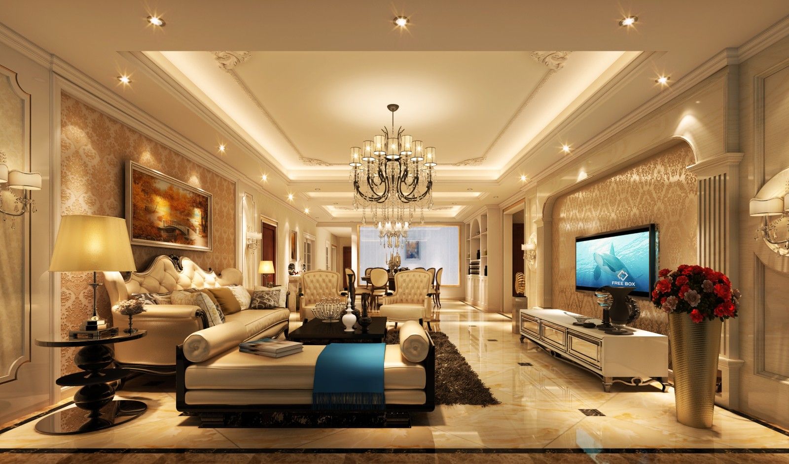 佛山保利外灘三居歐式風(fēng)格裝修效果圖
