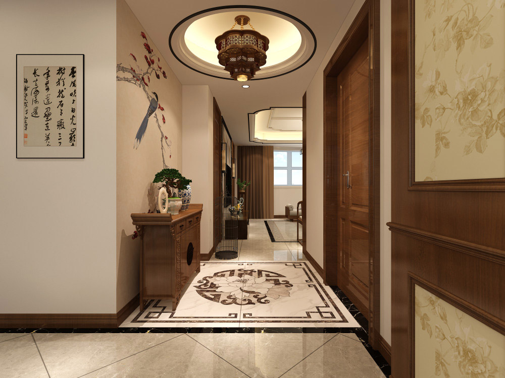 秦皇島達潤御園三居新中式風(fēng)格裝修效果圖