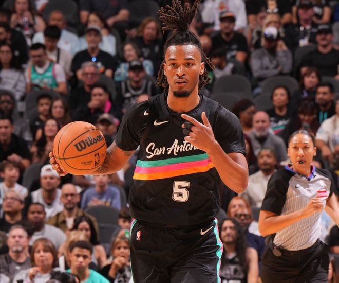 北京時間11月13日,NBA常規(guī)賽迎來焦點大戰(zhàn),勇士客場挑戰(zhàn)馬刺。馬刺此前戰(zhàn)績8勝2負,排名西部第二,本賽季馬刺進攻效率119.4聯(lián)盟第六,防守效率111.3聯(lián)盟第五,凈效率值+8.1聯(lián)盟第五,確實是全方位崛起。首先文班亞馬本賽季場均25.7分12.8籃板3.9蓋帽,進入11月份以來,整體表現(xiàn)不算好。不過上一場面對東部黑馬公牛,文班亞馬爆砍38分12籃板5蓋帽,帶隊險勝。關鍵時刻,文班亞馬是能站出來的。其次,??怂箯统龊蟠蛄藘蓤霰荣悾瑘鼍?2.5分,他能幫助文班亞馬分擔不少壓力。而且馬刺陣容深度足夠,場均8人上雙。