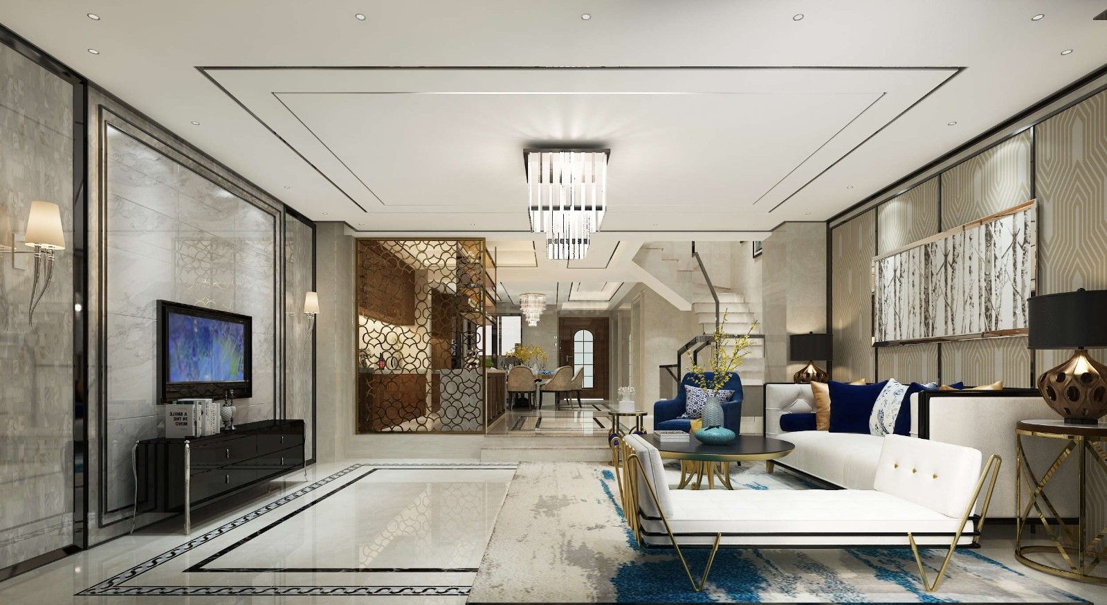 泉州陽光城翡翠灣別墅輕奢風(fēng)格裝修效果圖