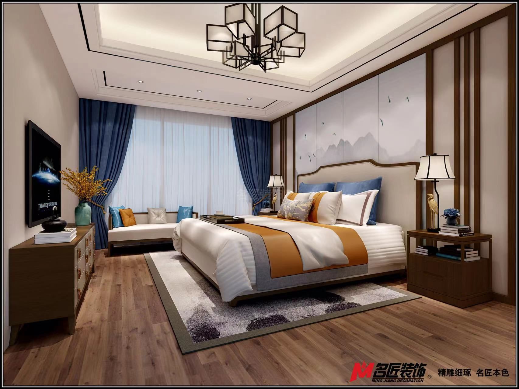 遂寧金域央墅三居新中式風(fēng)格裝修效果圖