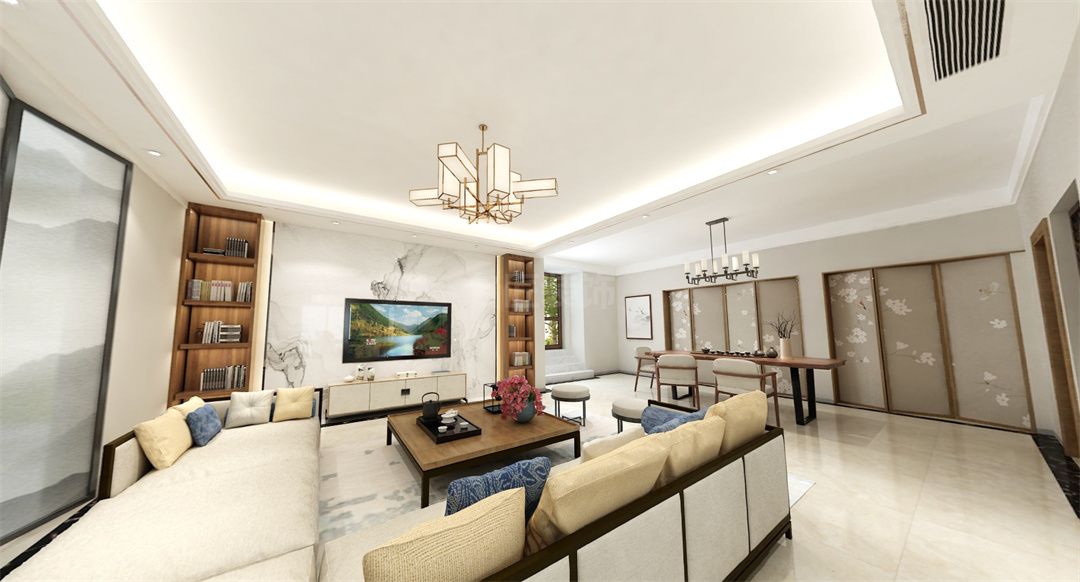 中山保利林語別墅新中式風(fēng)格裝修效果圖